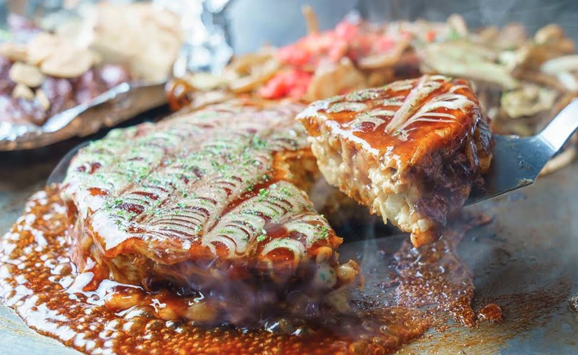 外はカリッ、中はふわっと食感の、鉄板で焼き上げる本場のお好み焼きを出来たてでお届けします。