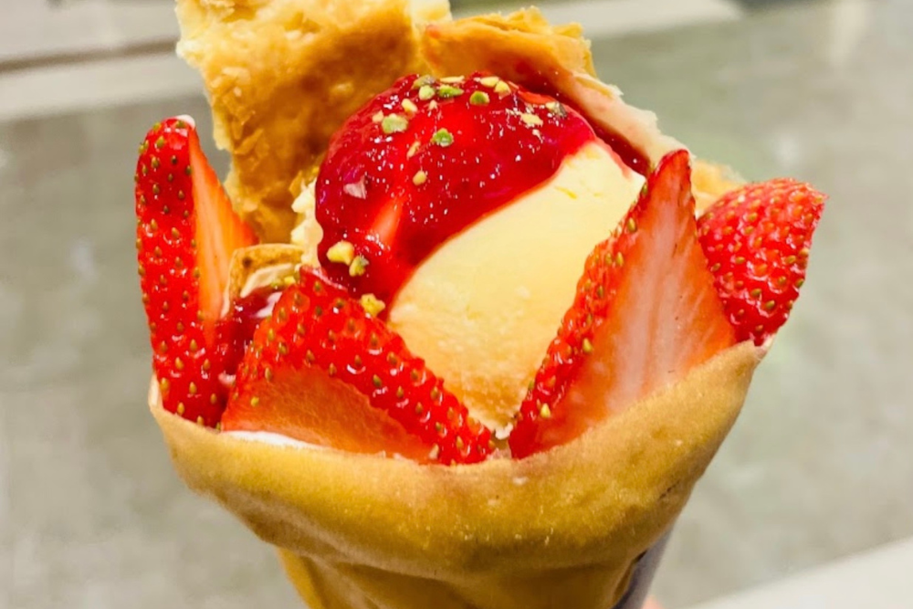 当店ではさまざまな種類のクレープやガレットを販売しており、ソフトクリームやタピオカなどもご用意しています。