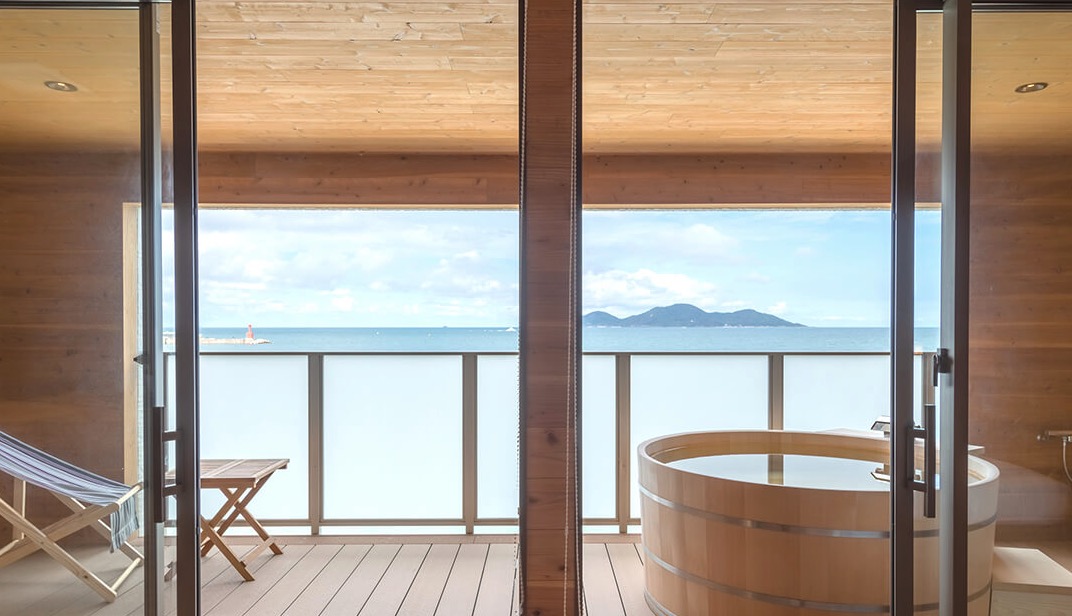 当旅館のお部屋は1日5組限定、全室オーシャンビューとなっており、玄界灘を一望できます。