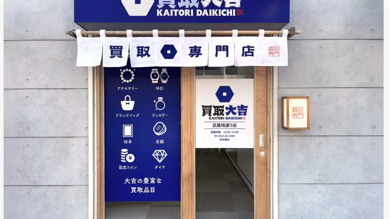 東京都武蔵野市の武蔵境駅から徒歩6分、武蔵野市民会館から徒歩3分にある「買取大吉 武蔵境通り店」は、ジュエリーやブランド品・金・プラチナ・ダイヤモンド・貴金属・時計などのブランド買取を行っている買取専門店です。