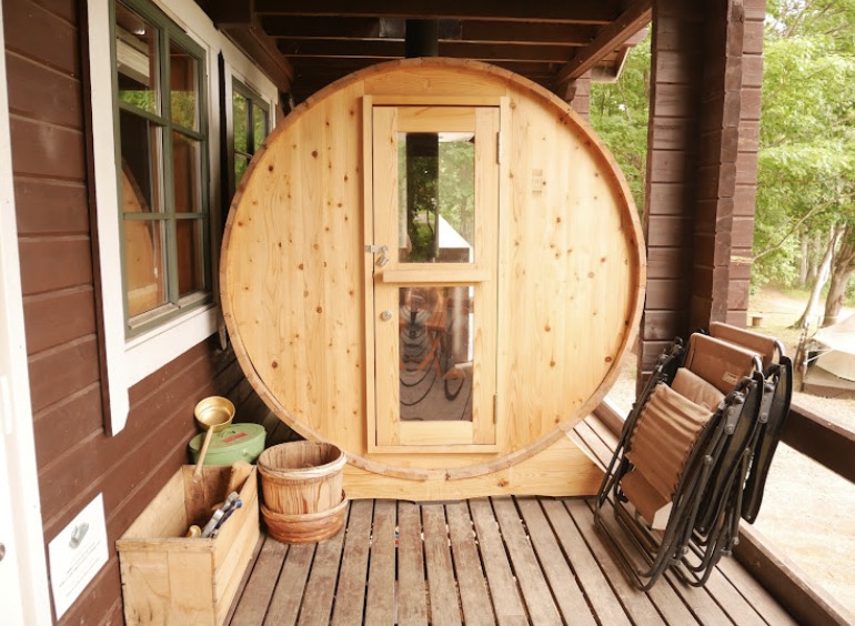 テラスにはONE SAUNAのバレルサウナ(樽型の木製サウナ)を設置しており、滞在中はいつでも使用できます。