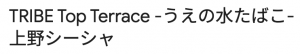 | 店舗名 | TRIBE Top Terrace -うえの水たばこ- 上野シーシャ |